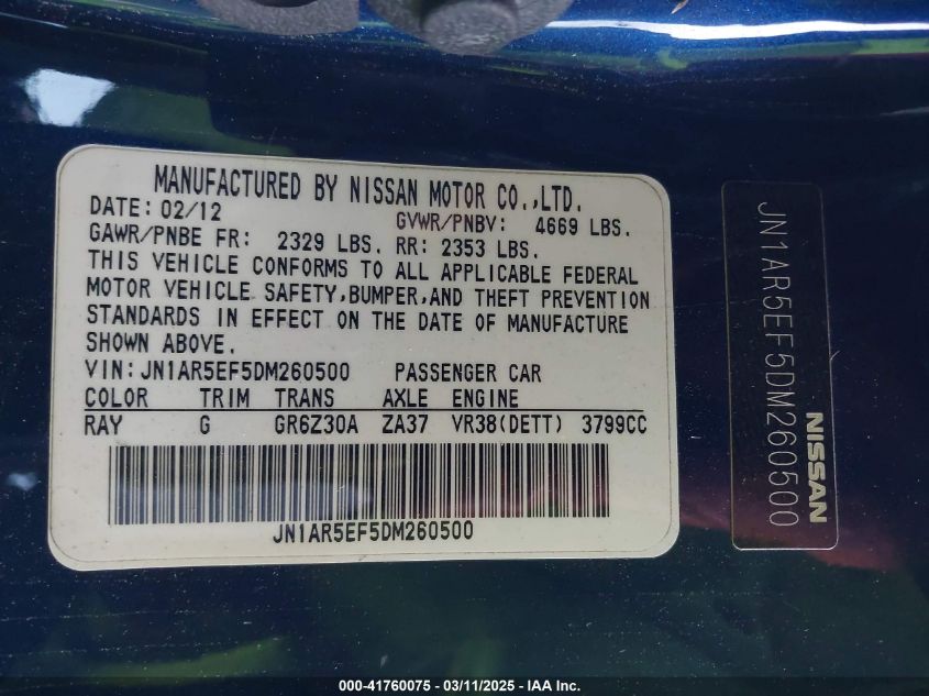 Color BlueCylinders 6Drive Full driveVIN JN1AR5EF5DM******State Run & Drive VerifiedDamage Right side AutoRIA