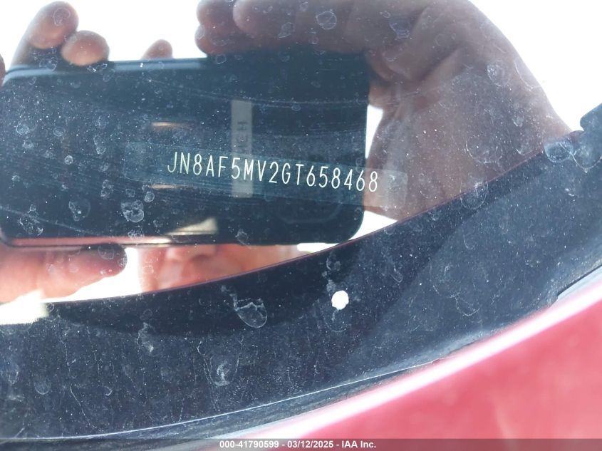 Color RedCylinders 4Drive Full driveVIN JN8AF5MV2GT******State Run & Drive VerifiedDamage Rear right AutoRIA