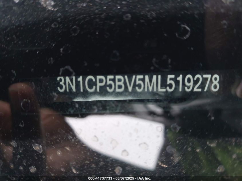 Color BlackCylinders 4Drive Front wheel driveVIN 3N1CP5BV5ML******State Run & Drive VerifiedDamage Left side AutoRIA