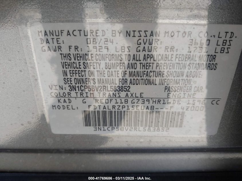2024 NISSAN KICKS 2024 Gasoline, 1.6, Front wheel drive, VIN - 3N1CP5BV2RL****** from the USA