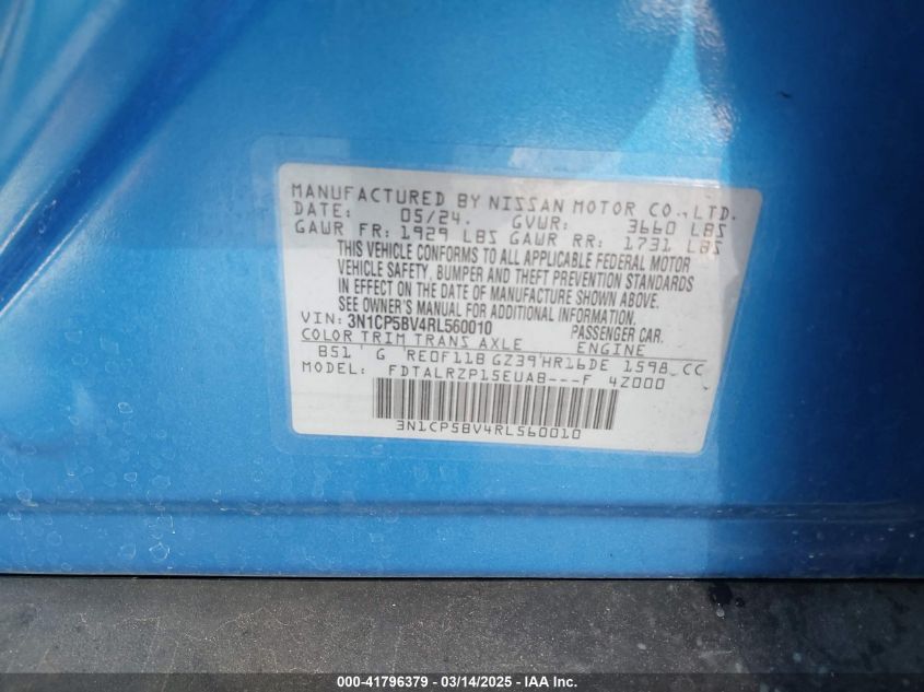 2024 NISSAN KICKS 2024 Gasoline, 1.6, Front wheel drive, VIN - 3N1CP5BV4RL****** from the USA