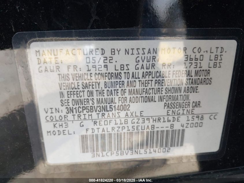 2022 NISSAN KICKS 2022 Gasoline, 1.6, Front wheel drive, VIN - 3N1CP5BV3NL****** from the USA