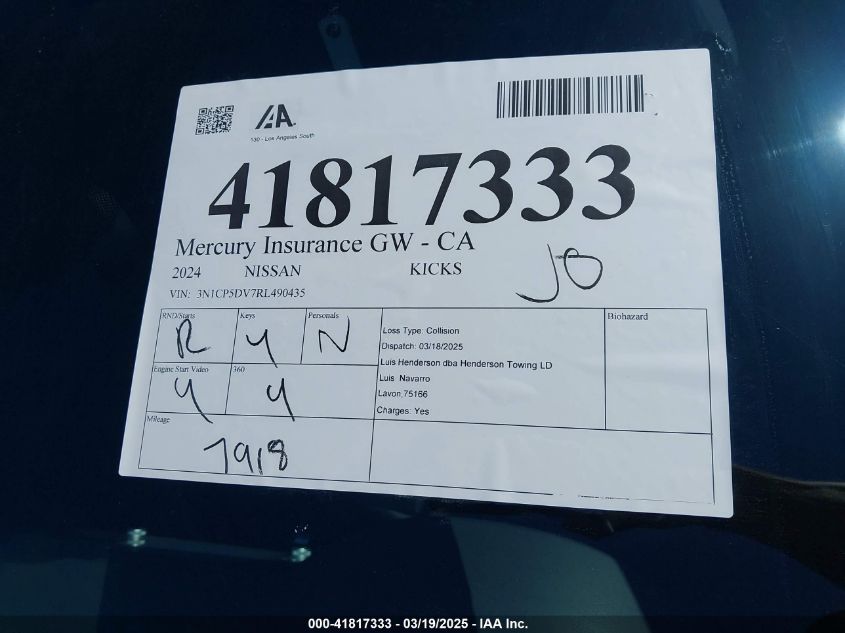 2024 NISSAN KICKS 2024 Gasoline, 1.6, Front wheel drive, VIN - 3N1CP5DV7RL****** from the USA