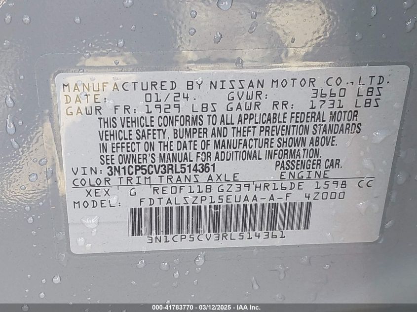 2024 NISSAN KICKS 2024 Gasoline, 1.6, Front wheel drive, VIN - 3N1CP5CV3RL****** from the USA