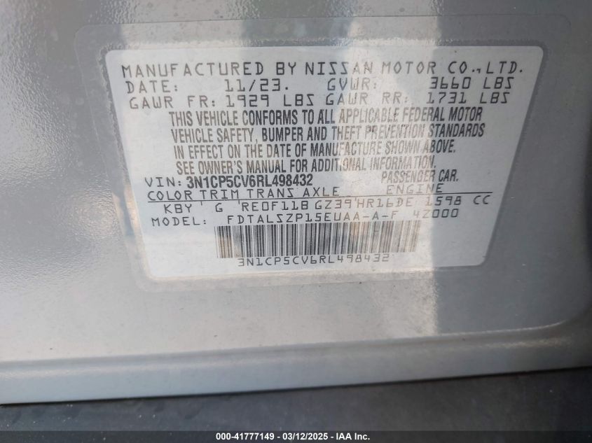 2024 NISSAN KICKS 2024 Gasoline, 1.6, Front wheel drive, VIN - 3N1CP5CV6RL****** from the USA