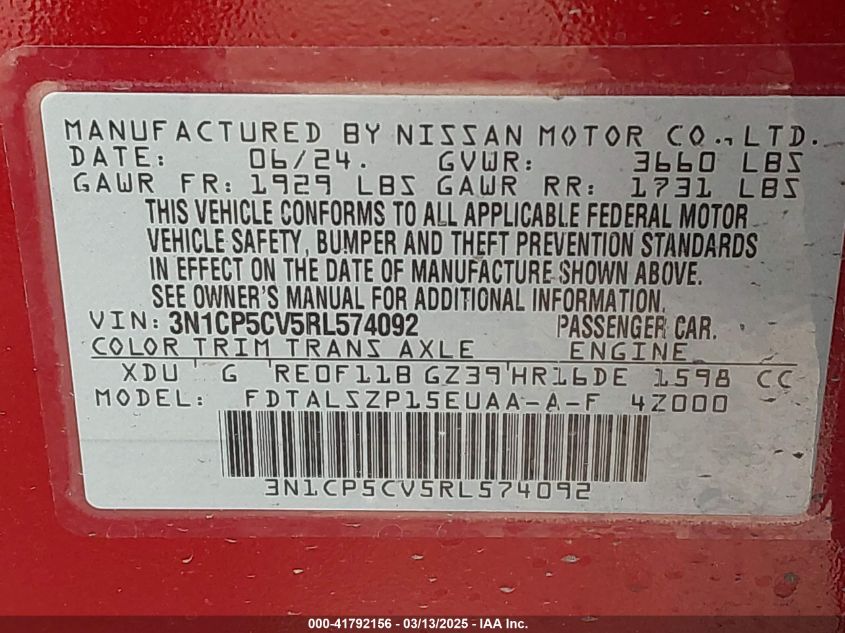 2024 NISSAN KICKS 2024 Gasoline, 1.6, Front wheel drive, VIN - 3N1CP5CV5RL****** from the USA