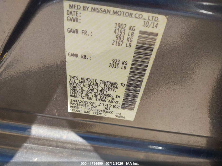 Color GrayDrive Front wheel driveVIN 1N4AZ0CP2FC******State Run & Drive VerifiedDamage Front or backAuction date 2025-03-20 AutoRIA