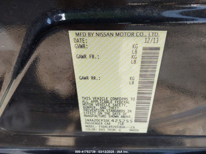 Color BlackDrive Front wheel driveVIN 1N4AZ0CP1DC******State Run & Drive VerifiedDamage Back AutoRIA