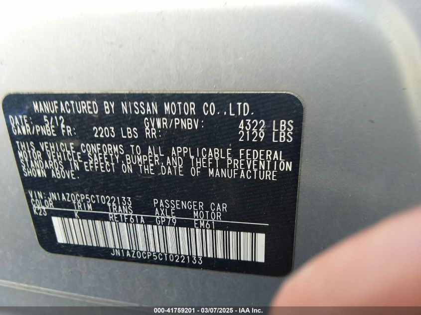 Color SilverDrive Front wheel driveVIN JN1AZ0CP5CT******State Run & Drive VerifiedDamage Insignificant AutoRIA