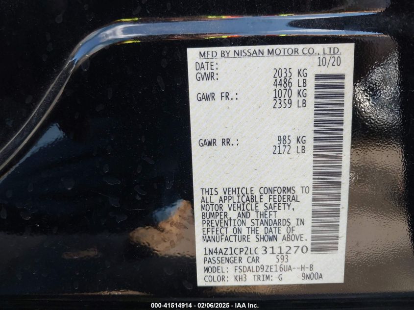 2020 NISSAN LEAF 2020 Electric, U, Front wheel drive, VIN - 1N4AZ1CP2LC****** from the USA