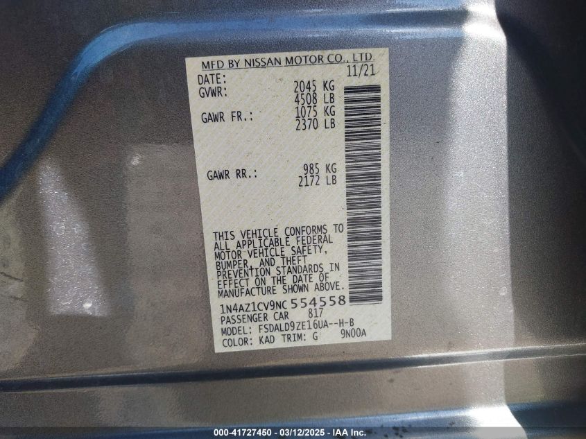 Color GrayDrive Front wheel driveVIN 1N4AZ1CV9NC******State Run & Drive VerifiedDamage Back AutoRIA