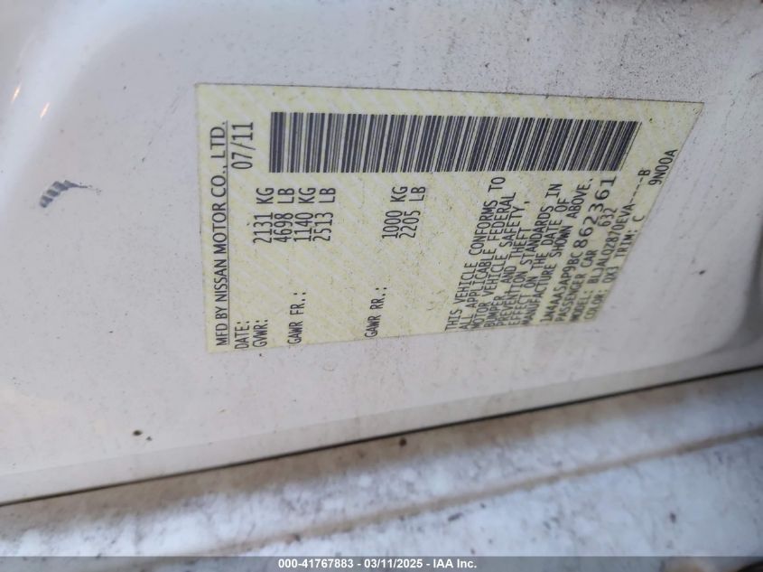 Color WhiteCylinders 6Drive Front wheel driveVIN 1N4AA5AP9BC******State Run & Drive VerifiedDamage Insignificant