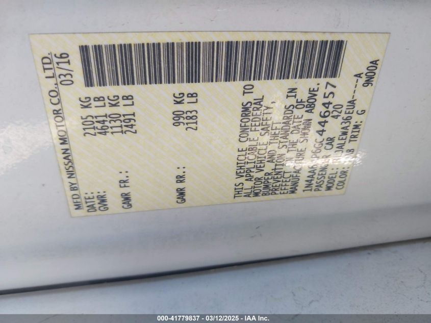 Color WhiteCylinders 6Drive Front wheel driveVIN 1N4AA6AP6GC******State Run & Drive VerifiedDamage Front or back AutoRIA