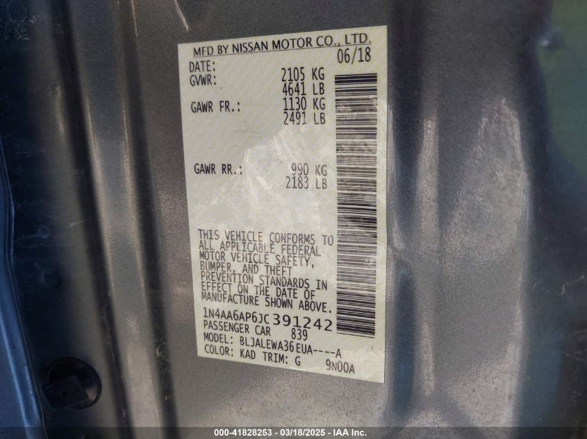 Color GrayCylinders 6Drive Front wheel driveVIN 1N4AA6AP6JC******State Run & Drive VerifiedDamage Left side AutoRIA