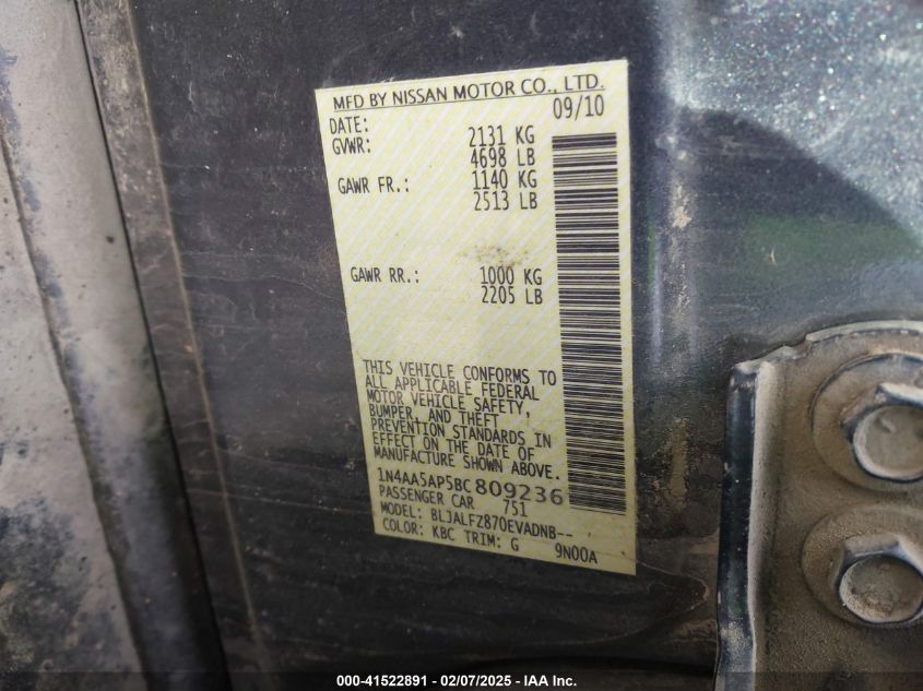 Color GrayCylinders 6Drive Front wheel driveVIN 1N4AA5AP5BC******State Run & Drive VerifiedDamage Front or back