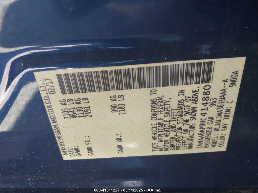 2017 NISSAN MAXIMA 2017 Gasoline, 3.5, Front wheel drive, VIN - 1N4AA6AP9HC****** from the USA
