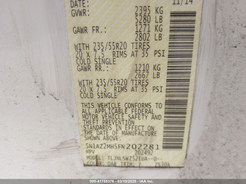 2015 NISSAN MURANO 2015 Gasoline, 3.5, Full drive, VIN - 5N1AZ2MH5FN****** from the USA