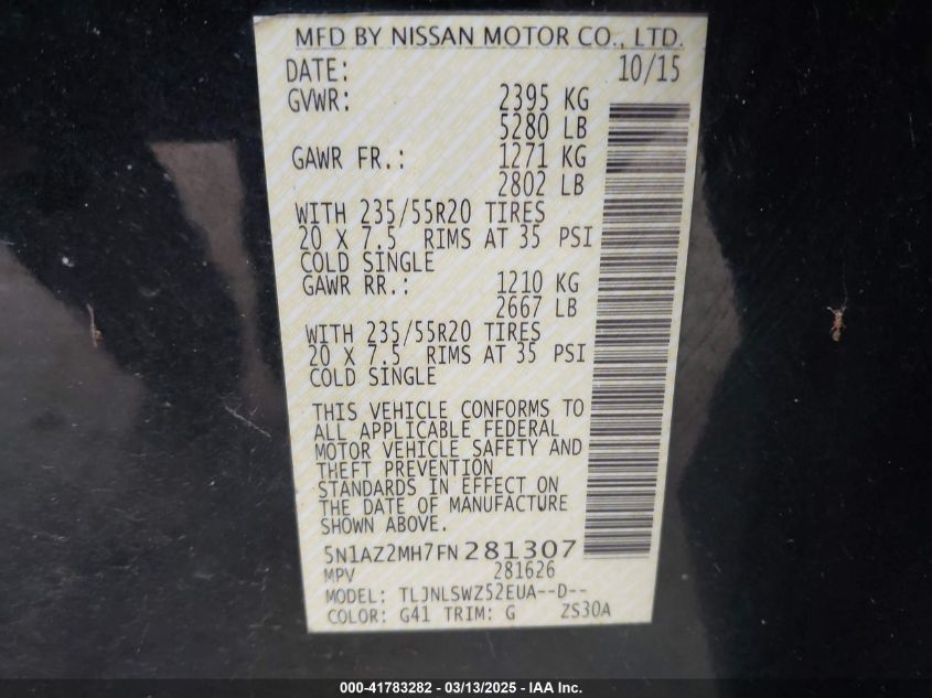 2015 NISSAN MURANO 2015 Gasoline, 3.5, Full drive, VIN - 5N1AZ2MH7FN****** from the USA