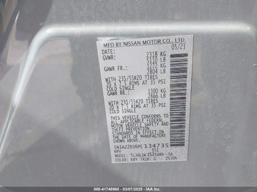 2023 NISSAN MURANO 2023 Gasoline, 3.5, Front wheel drive, VIN - 5N1AZ2DJ6PC****** from the USA