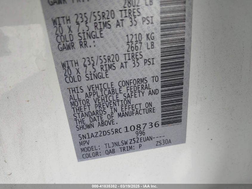 2024 NISSAN MURANO 2024 Gasoline, 3.5, Full drive, VIN - 5N1AZ2DS5RC****** from the USA