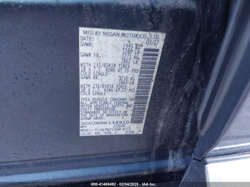 2017 NISSAN MURANO 2017 Gasoline, 3.5, Full drive, VIN - 5N1AZ2MH9HN****** from the USA