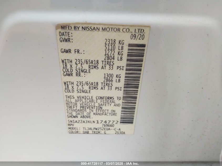 2020 NISSAN MURANO 2020 Gasoline, 3.5, Front wheel drive, VIN - 5N1AZ2AJXLN****** from the USA