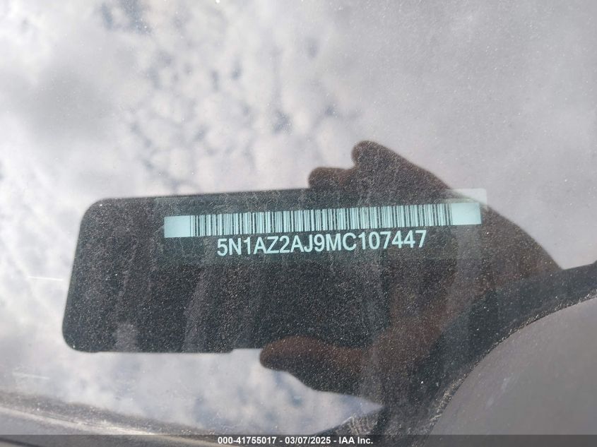 Color BlueCylinders 6Drive Front wheel driveVIN 5N1AZ2AJ9MC******State Run & Drive VerifiedDamage Left side AutoRIA