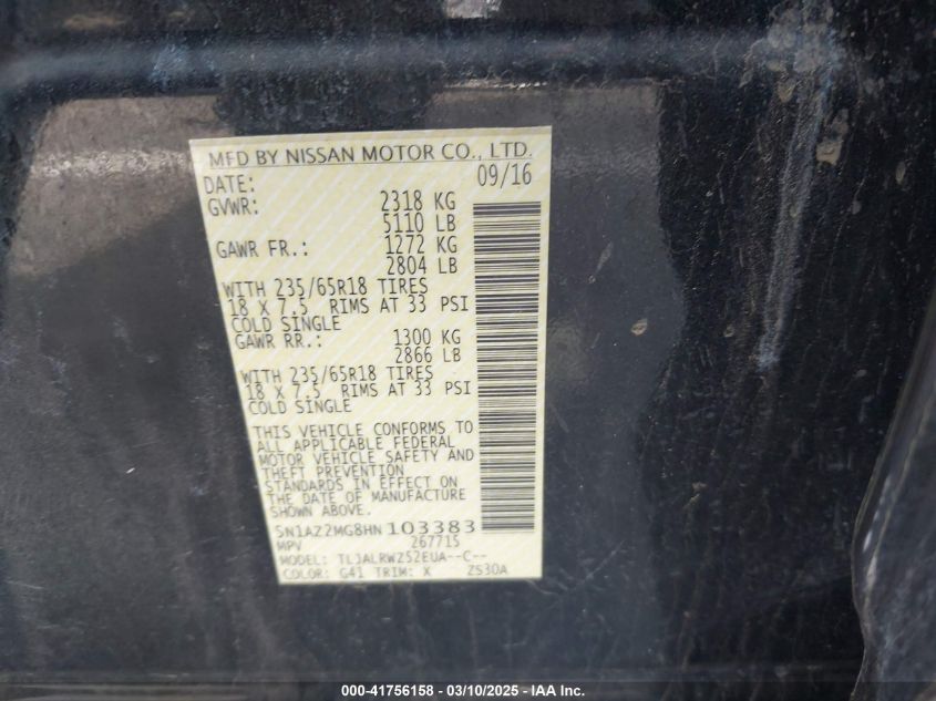 2017 NISSAN MURANO 2017 Gasoline, 3.5, Front wheel drive, VIN - 5N1AZ2MG8HN****** from the USA