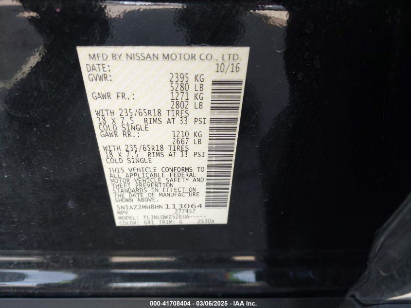 2017 NISSAN MURANO 2017 Gasoline, 3.5, Full drive, VIN - 5N1AZ2MH8HN****** from the USA