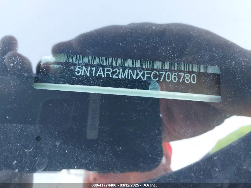 Color WhiteCylinders 6Drive Front wheel driveVIN 5N1AR2MNXFC******State Run & Drive VerifiedDamage InsignificantAuction date 2025-03-20 AutoRIA