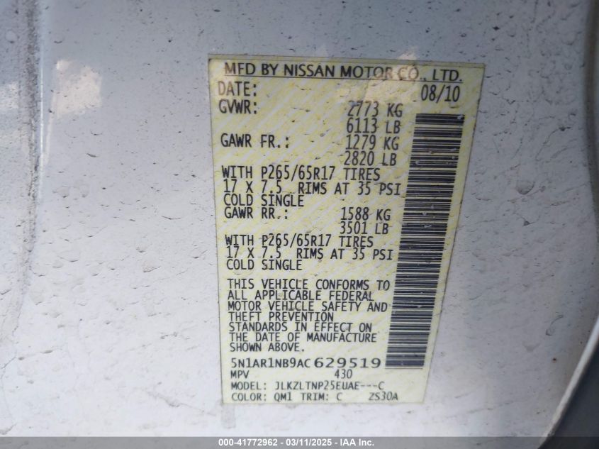 2010 NISSAN PATHFINDER 2010 Gasoline, 4.0, Full drive, VIN - 5N1AR1NB9AC****** from the USA
