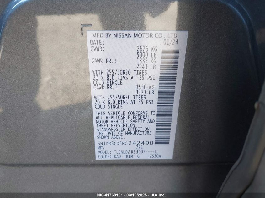 2024 NISSAN PATHFINDER 2024 Gasoline, 3.5, Full drive, VIN - 5N1DR3CD3RC****** from the USA