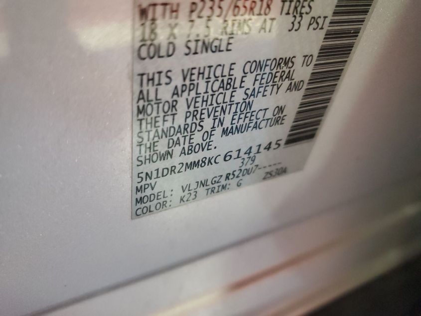 Color Cylinders 6Drive Full driveVIN 5N1DR2MM8KC******State Run & Drive VerifiedDamage Insignificant AutoRIA