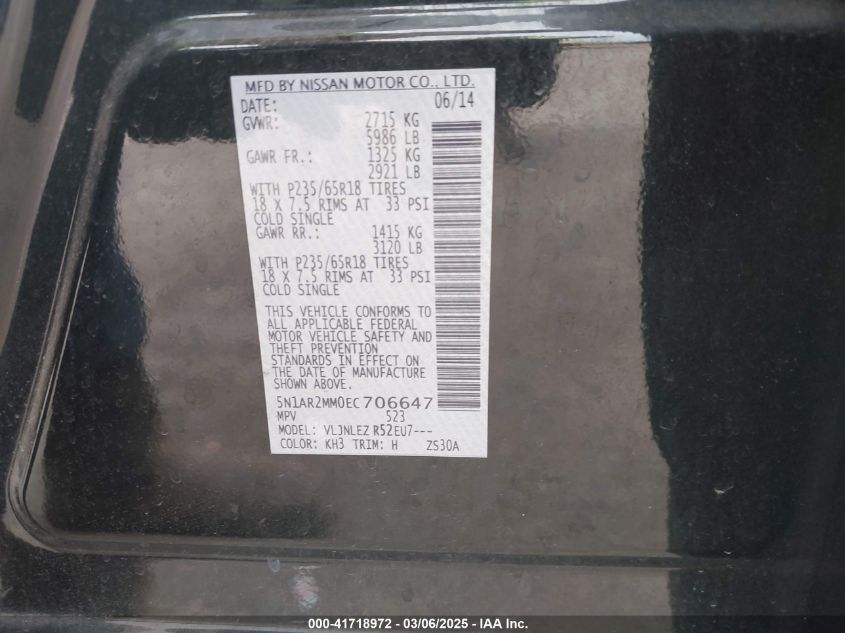 2014 NISSAN PATHFINDER 2014 Gasoline, 3.5, Full drive, VIN - 5N1AR2MM0EC****** from the USA