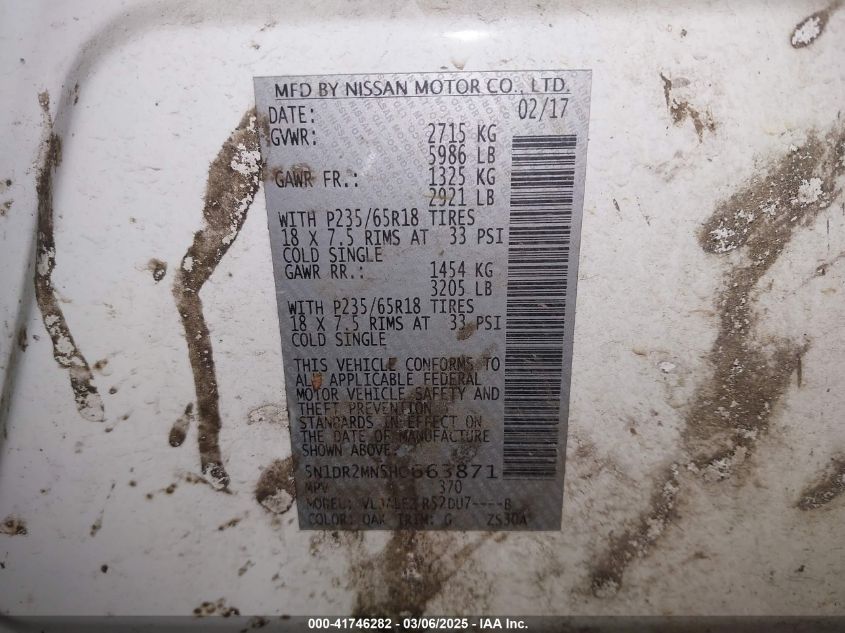 2017 NISSAN PATHFINDER 2017 Gasoline, 3.5, Front wheel drive, VIN - 5N1DR2MN5HC****** from the USA