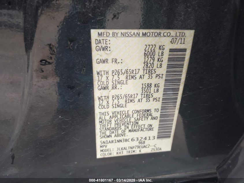 2011 NISSAN PATHFINDER 2011 Gasoline, 4.0, Unknown, VIN - 5N1AR1NN3BC****** from the USA