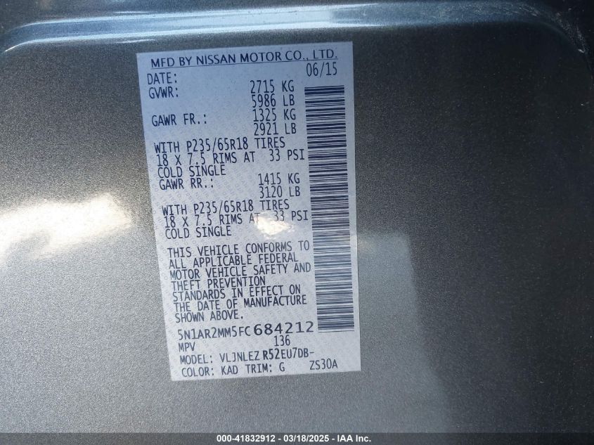 2015 NISSAN PATHFINDER 2015 Gasoline, 3.5, Full drive, VIN - 5N1AR2MM5FC****** from the USA