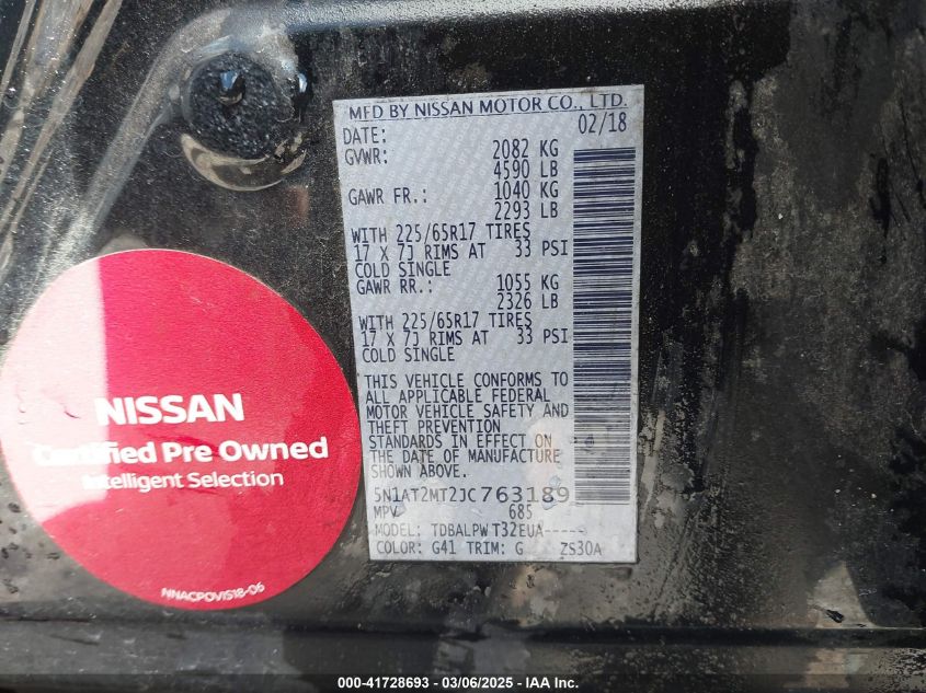 2018 NISSAN ROGUE 2018 Gasoline, 2.5, Front wheel drive, VIN - 5N1AT2MT2JC****** from the USA