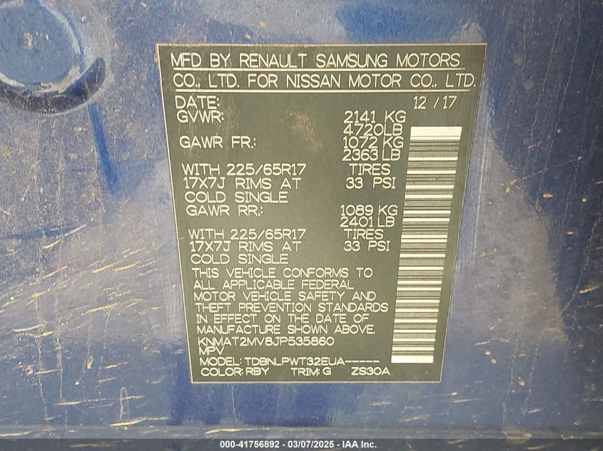 2018 NISSAN ROGUE 2018 Gasoline, 2.5, Full drive, VIN - KNMAT2MV8JP****** from the USA
