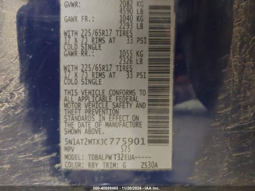 Color BlueCylinders 4Drive Front wheel driveVIN 5N1AT2MTXJC******State Run & Drive VerifiedDamage Front or back AutoRIA