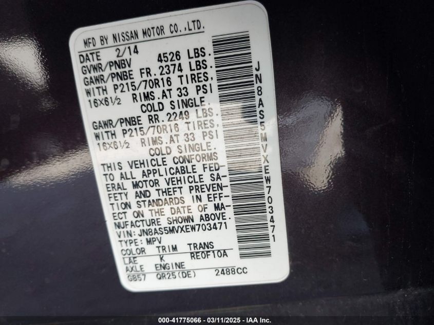2014 NISSAN ROGUE 2014 Gasoline, 2.5, Full drive, VIN - JN8AS5MVXEW****** from the USA