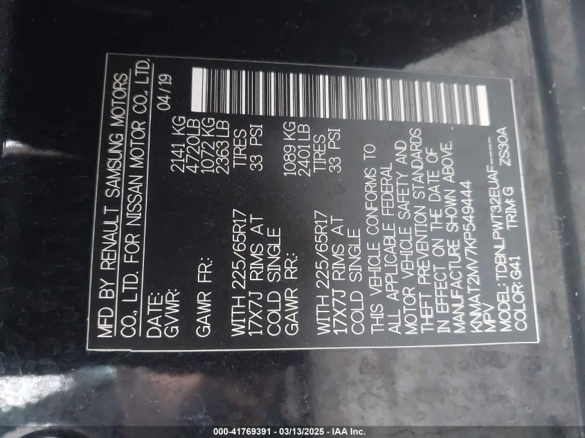 2019 NISSAN ROGUE 2019 Gasoline, 2.5, Full drive, VIN - KNMAT2MV7KP****** from the USA