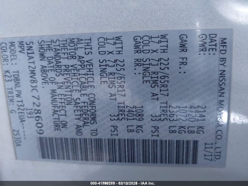 2018 NISSAN ROGUE 2018 Gasoline, 2.5, Full drive, VIN - 5N1AT2MV8JC****** from the USA