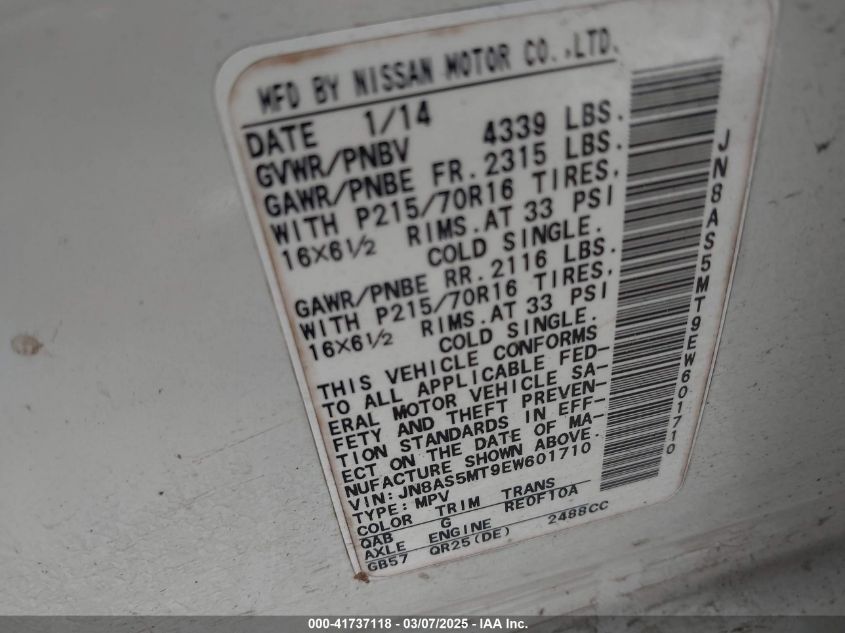 Color WhiteCylinders 4Drive Front wheel driveVIN JN8AS5MT9EW******State Run & Drive VerifiedDamage Front and back AutoRIA