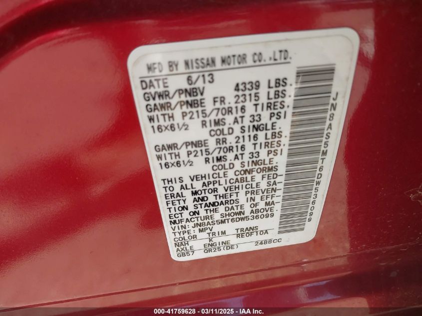 Color RedCylinders 4Drive Front wheel driveVIN JN8AS5MT6DW******State Run & Drive VerifiedDamage Front or back AutoRIA
