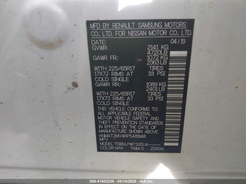 2019 NISSAN ROGUE 2019 Gasoline, 2.5, Full drive, VIN - KNMAT2MV4KP****** from the USA