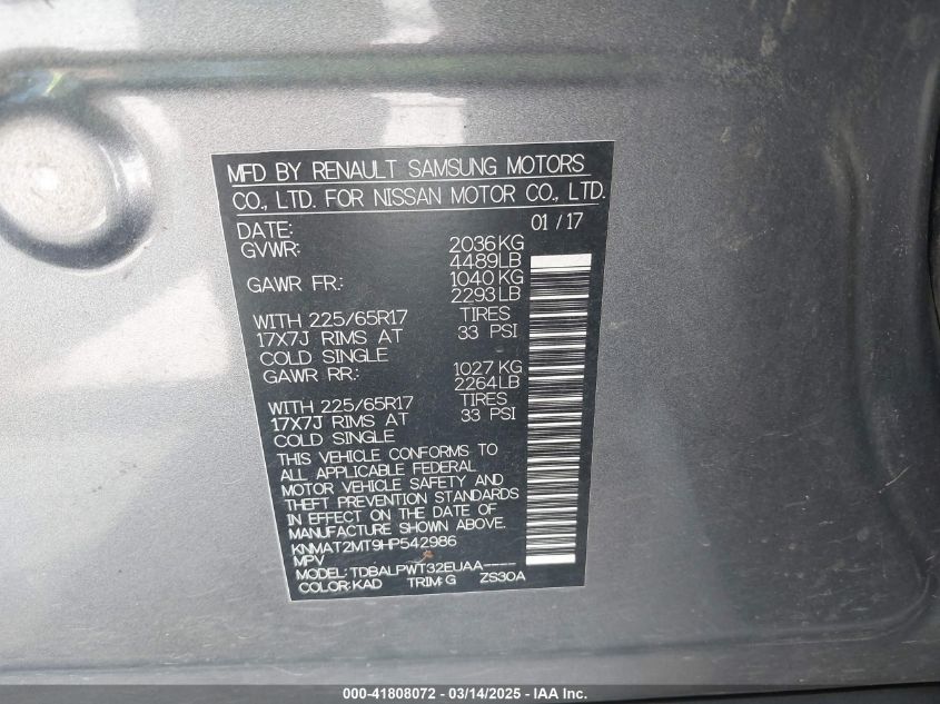 2017 NISSAN ROGUE 2017 Gasoline, 2.5, Front wheel drive, VIN - KNMAT2MT9HP****** from the USA