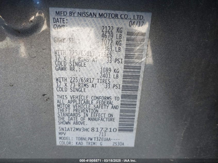 2017 NISSAN ROGUE 2017 Gasoline, 2.5, Full drive, VIN - 5N1AT2MV3HC****** from the USA