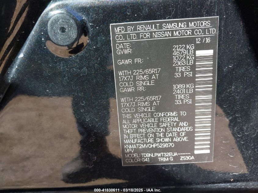 2017 NISSAN ROGUE 2017 Gasoline, 2.5, Full drive, VIN - KNMAT2MV0HP****** from the USA