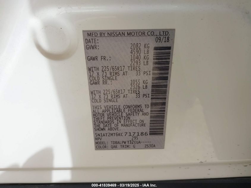 2019 NISSAN ROGUE 2019 Gasoline, 2.5, Front wheel drive, VIN - 5N1AT2MT6KC****** from the USA
